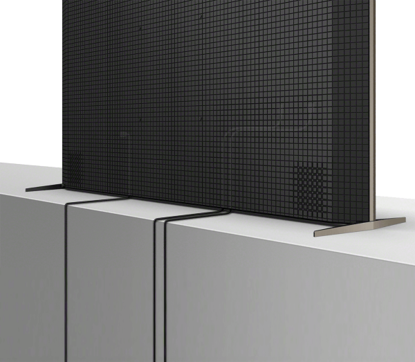 - Multi-position stand offering three variations – low-profile immersive setting, narrow furniture setting, raised to accommodate a soundbar.15