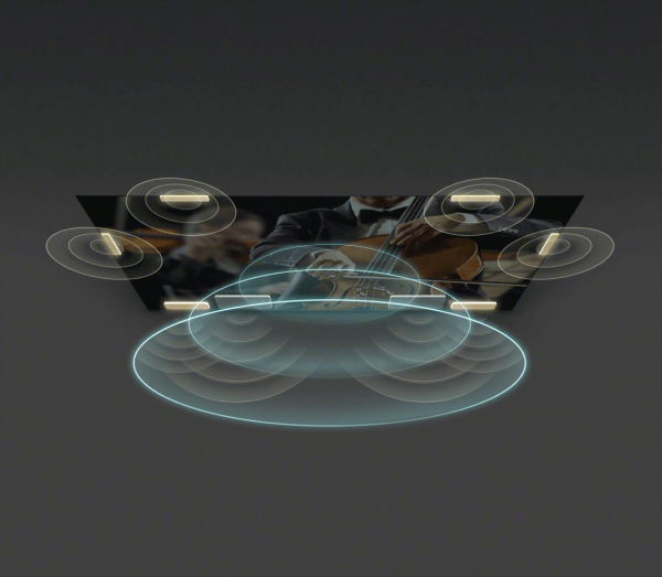 - Hear true immersive audio with four sound positioning frame tweeters in addition to front-firing TV speakers and dual subwoofers, plus support for Dolby Atmos.